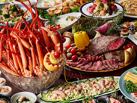 蟹&ローストビーフ食べ放題!その他シェフ特製料理や季節のデザートなど贅沢ディナーブッフェ。
