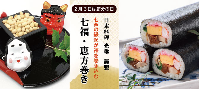 総料理長こだわりの料理を詰めた「七福・恵方巻弁当」を