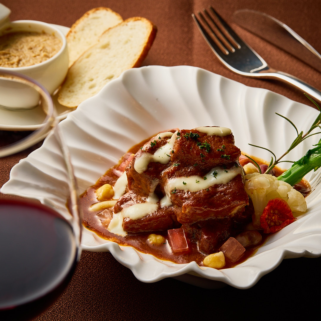 [期間]2026年2/7(土)~2026年3/6(金) [時間]12:00p.m.~8:00p.m. 熊本県産猪肩ロースのラグー ¥2,500 香味野菜とあわせて3日間赤ワインで丁寧に寝かせた猪肉を 熊本県産トマトと人参のやさしい甘みとともに、 香り高くじっくり煮込んだ一皿。 *数量に限りがあります。 *表示料金はサービス料・税込